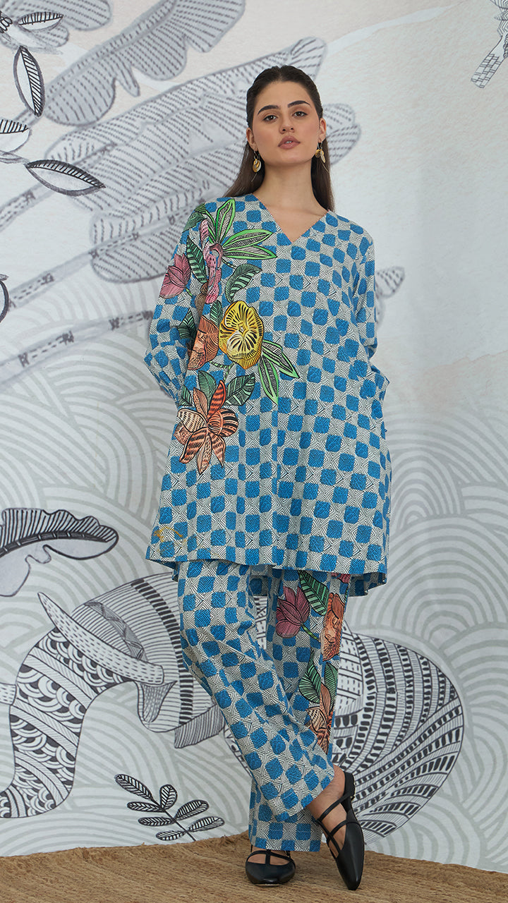 BLUE BLOSSOM COTTON LONG SHIRT CO-ORD SET