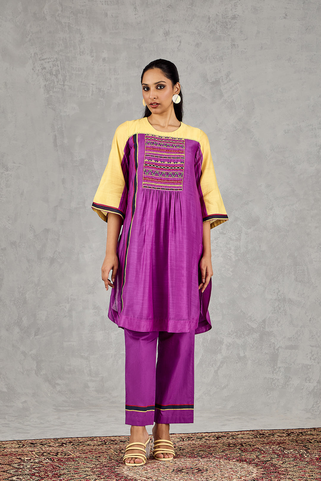 PURPLE AND HOT PINK COLOUR BLOCK NAMAH TUNIC SET
