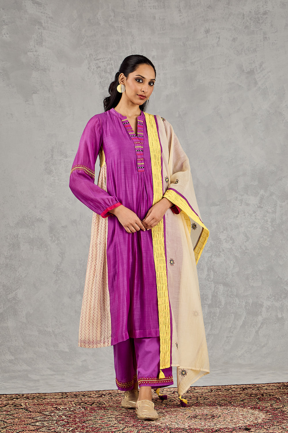 PURPLE ZIG-ZAG SIDE KALI KURTA SET