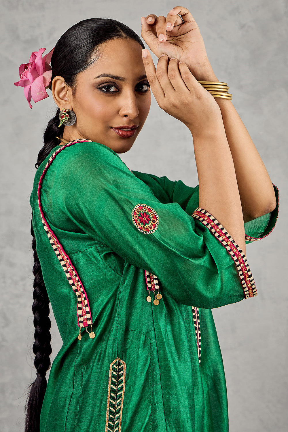 HOT PINK TREE EMBROIDERY KURTA SET