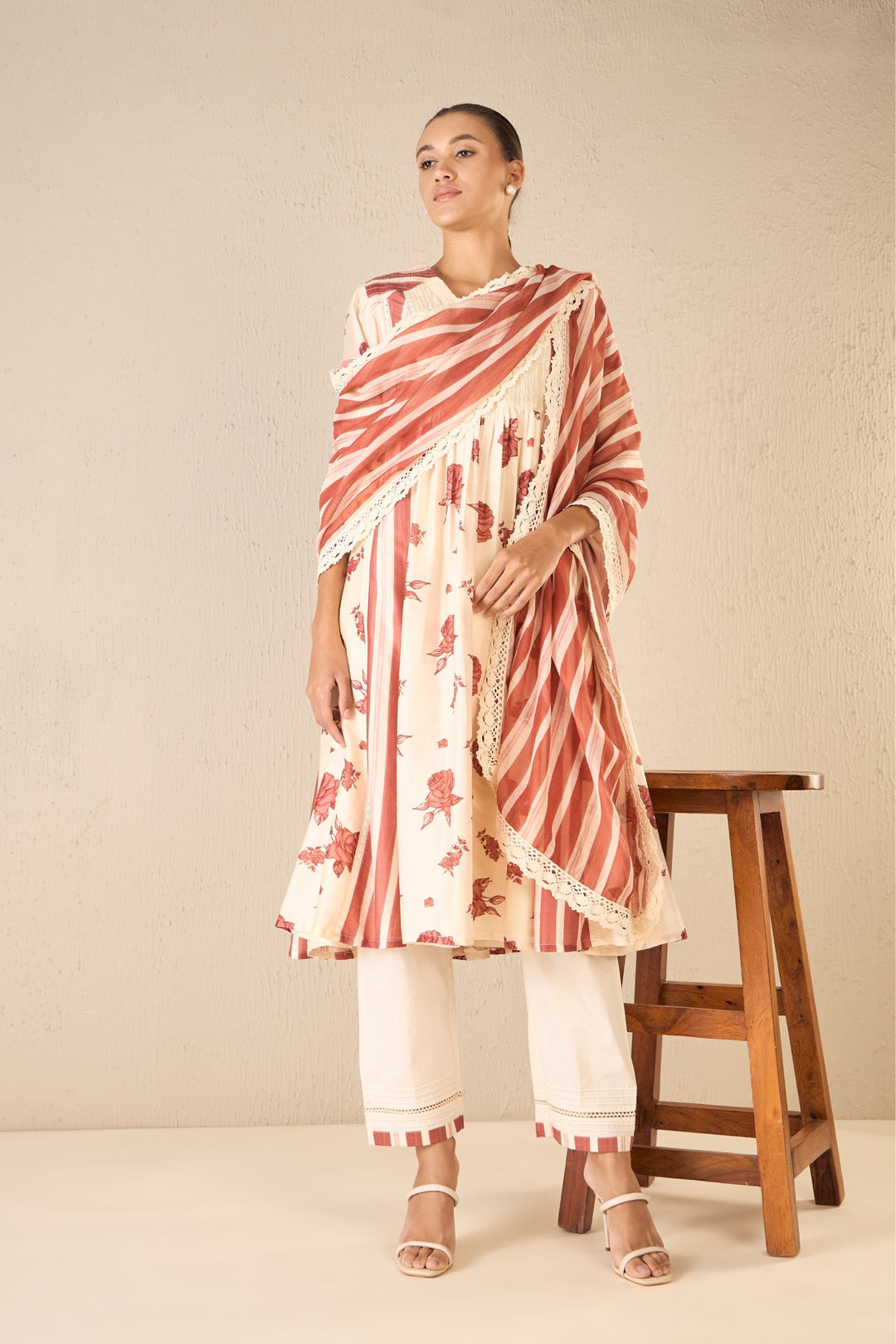 MEADOW STRIPES: RED STRIPE LACE DUPATTA