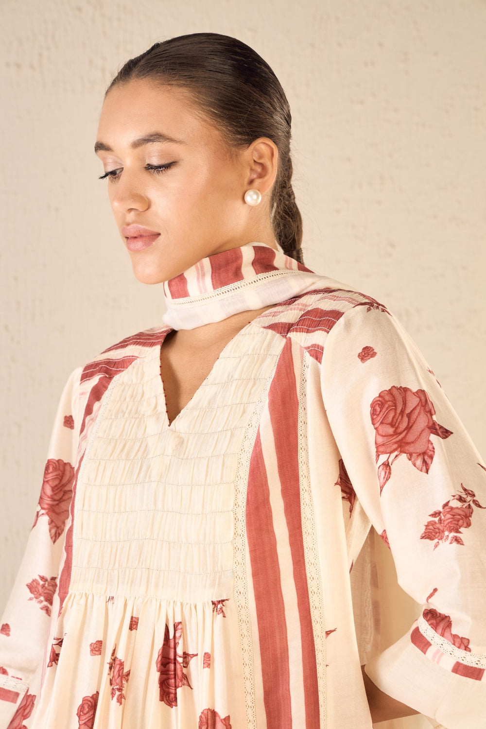 PETAL PATH: IVORY CHANERI ROSE EMBRIODERY BORDER DUPATTA