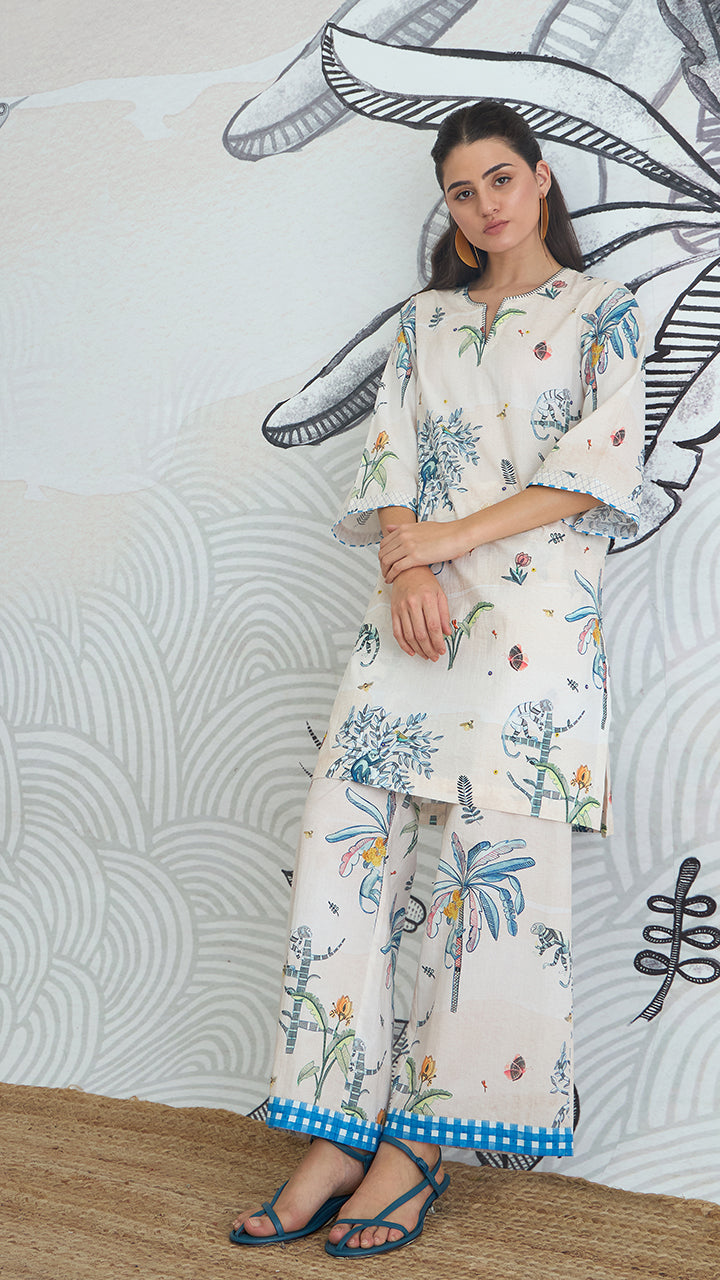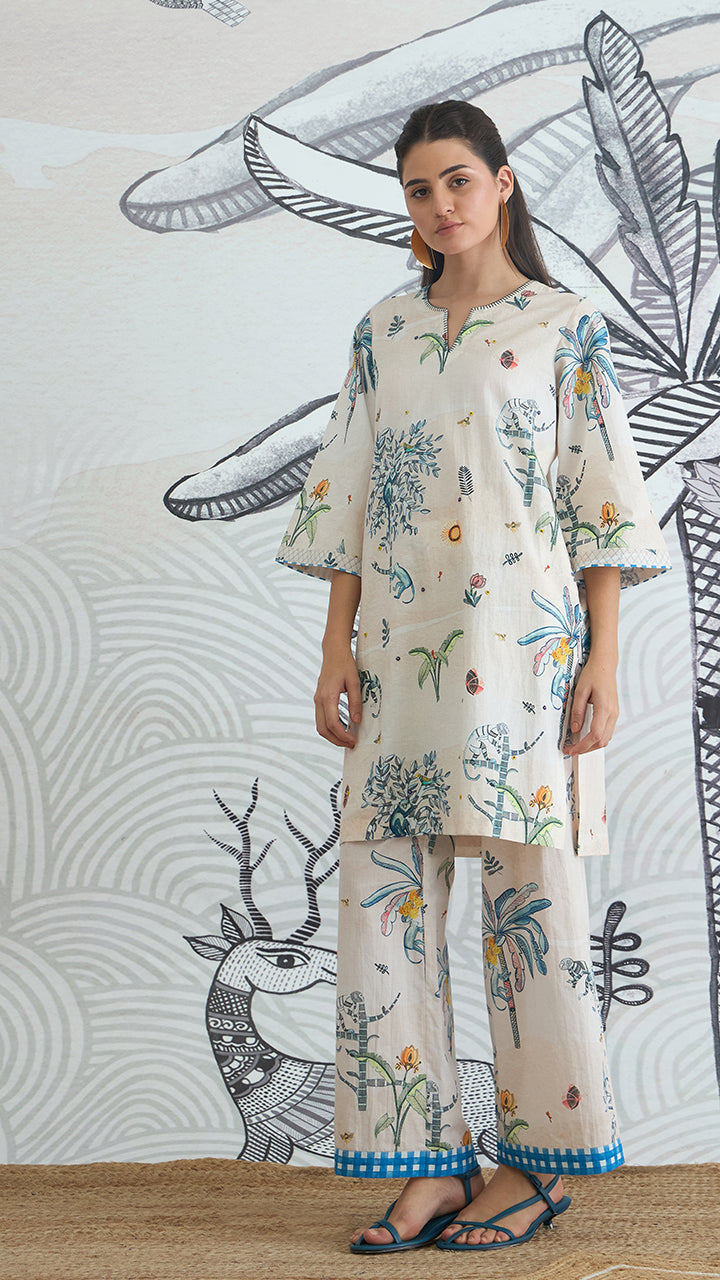 Simplify your summer style with our 'Mithila' Jungle Print Short kurta. This chic ensemble features a relaxed top and comfortable , designed for effortless elegance. Made from breathable fabric, it's a versatile and comfortable Jungle Print Short kurta perfect for travel, holidays, or any warm-weather occasion.