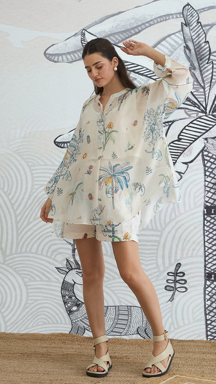 Discover the ultimate in comfort and style with our 'Mithila' Jungle Kimono Tunic. A comfortable and breathable Namah Tunic ideal for summer travels and relaxed holiday escapes. Experience effortless sophistication.