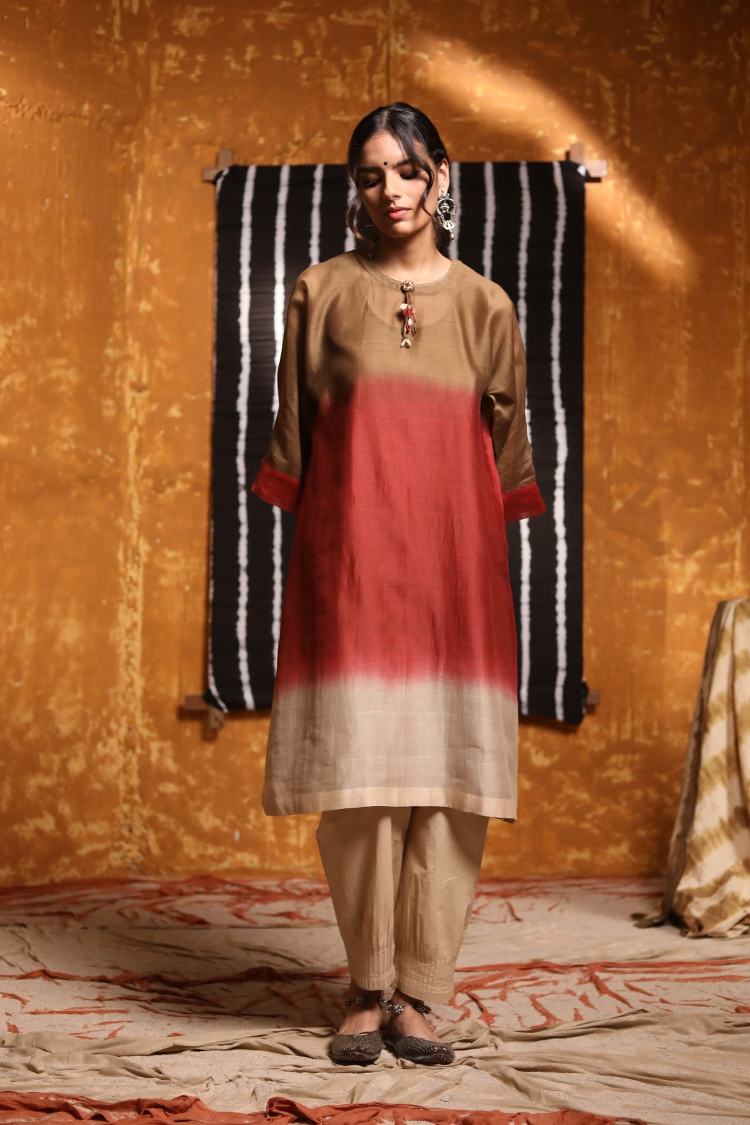 Mustard Silk V-Neck Cape with Tara Tribal motifs