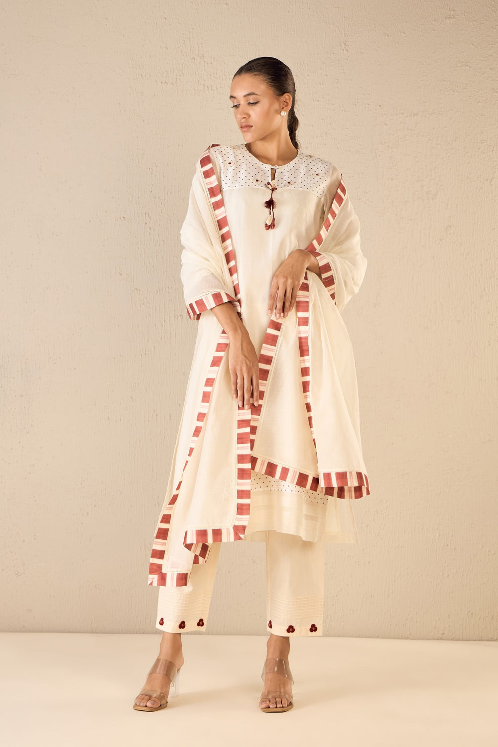 BLOOM DOTS: IVORY POLKA DETAILING KURTA