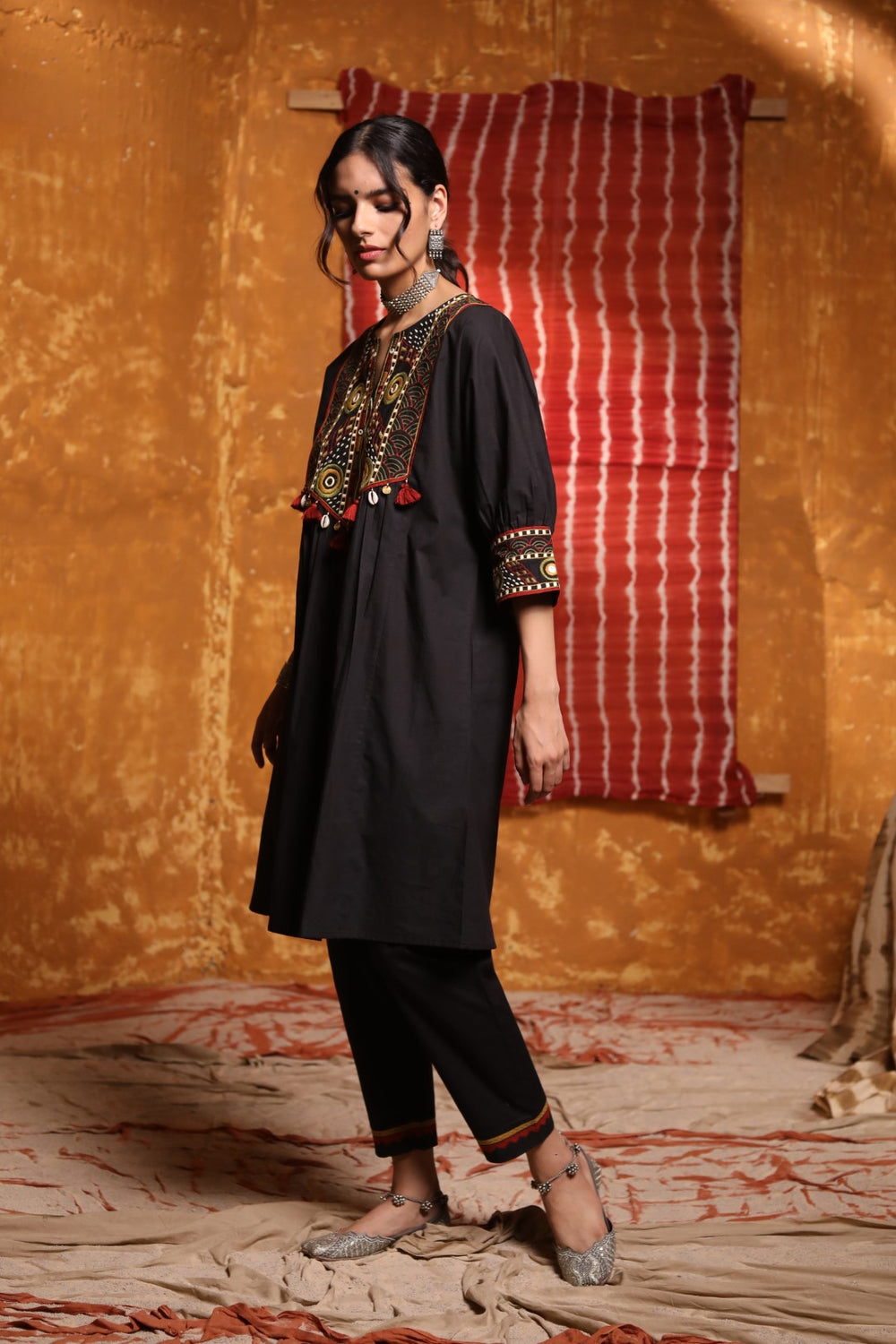 Ivory Colour Block Embriodery Patch Kurta With Pants